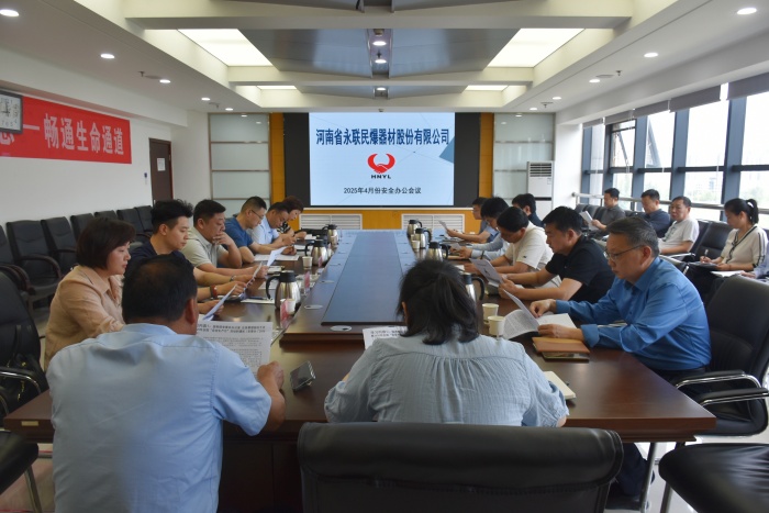 2025年4月29日,河南省永聯民爆器材股份有限公司召開了4月份安全辦公會議。公司安委會成員、安委會辦公室成員以及桐柏、欒川縣、安陽市、淅川、焦作市、信陽市平橋等6家分公司負責人參加了會議。會議由公司工會主席黃小虎主持,董事長劉嵩、總經理靳義國參加會議并講話。